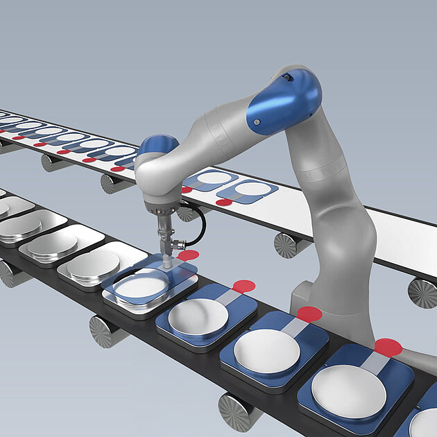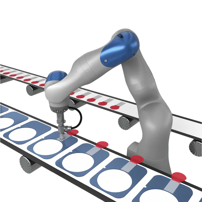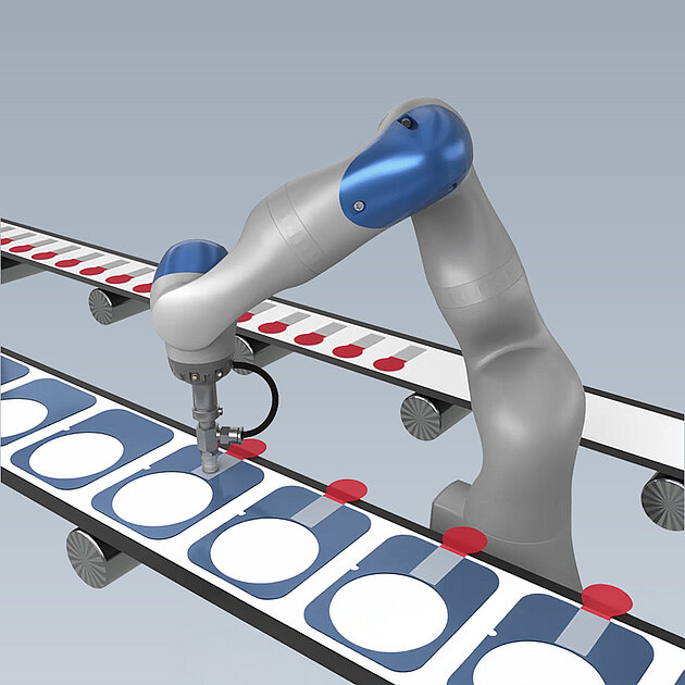 Genaues Positionieren von Verarbeitungshilfen mit Robotertechnologie: Pick and Place-optimierte Formstanzteile optimieren das prozesssichere Ablösen von Linerabdeckungen in allen Verarbeitungsprozessen.